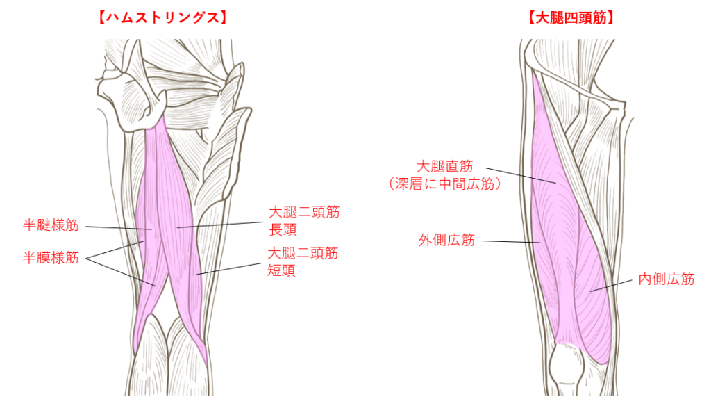 もも裏のハムストリングスや、前ももの大腿四頭筋は骨盤と密接に連動します。