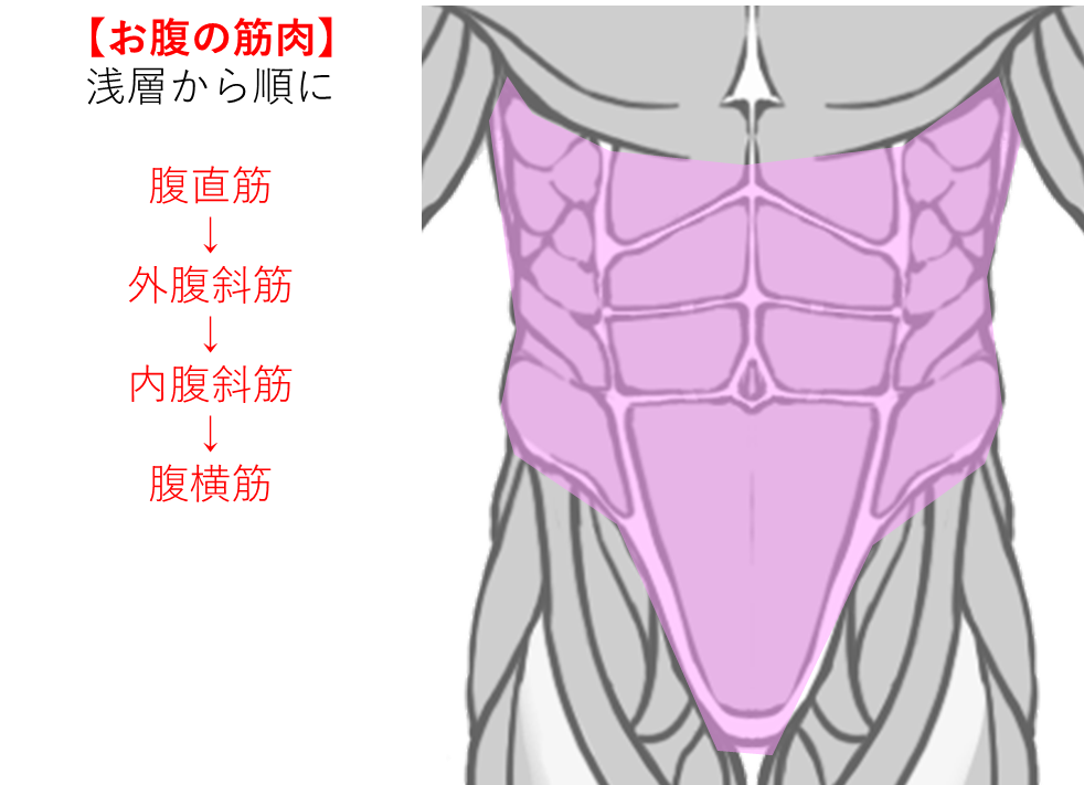 仰向けで息を吐きながら腹部を軽く凹ませ、