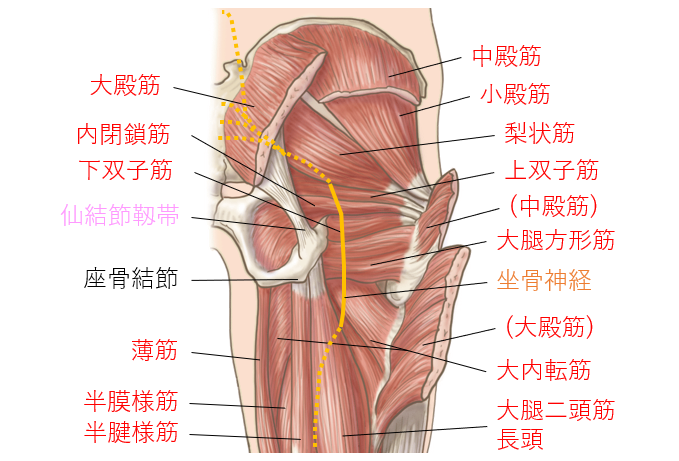 臀部には大殿筋・中殿筋など骨盤を支える筋に加え、